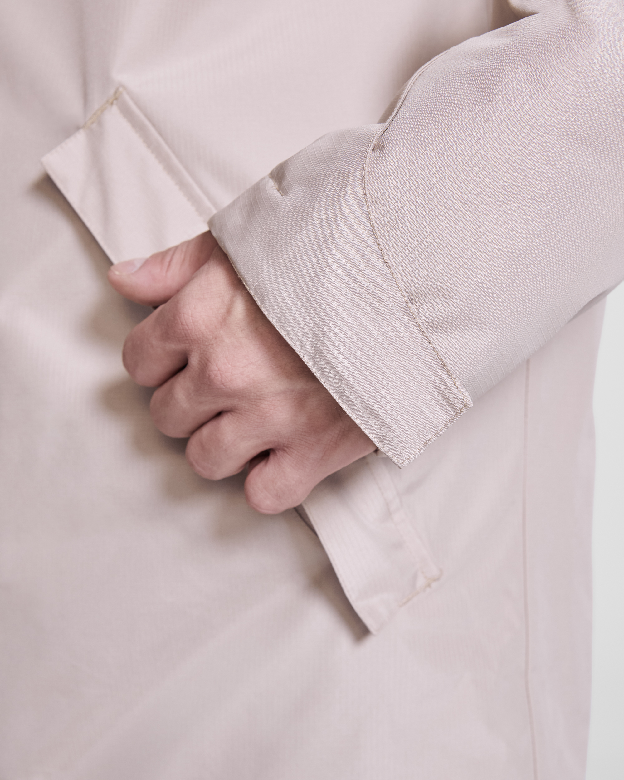 Parka acolchada de tejido impermeable. Cuello alto con capucha plegable y cierre de velcro. Cremallera central a tono con solapa. Bolsillos laterales con cremallera y tapeta fija. Bolsillo interior con cierre de velcro. Puños ajustables con trabilla de velcro. Acceso interior para reprocesos en espalda y pecho izquierdo.