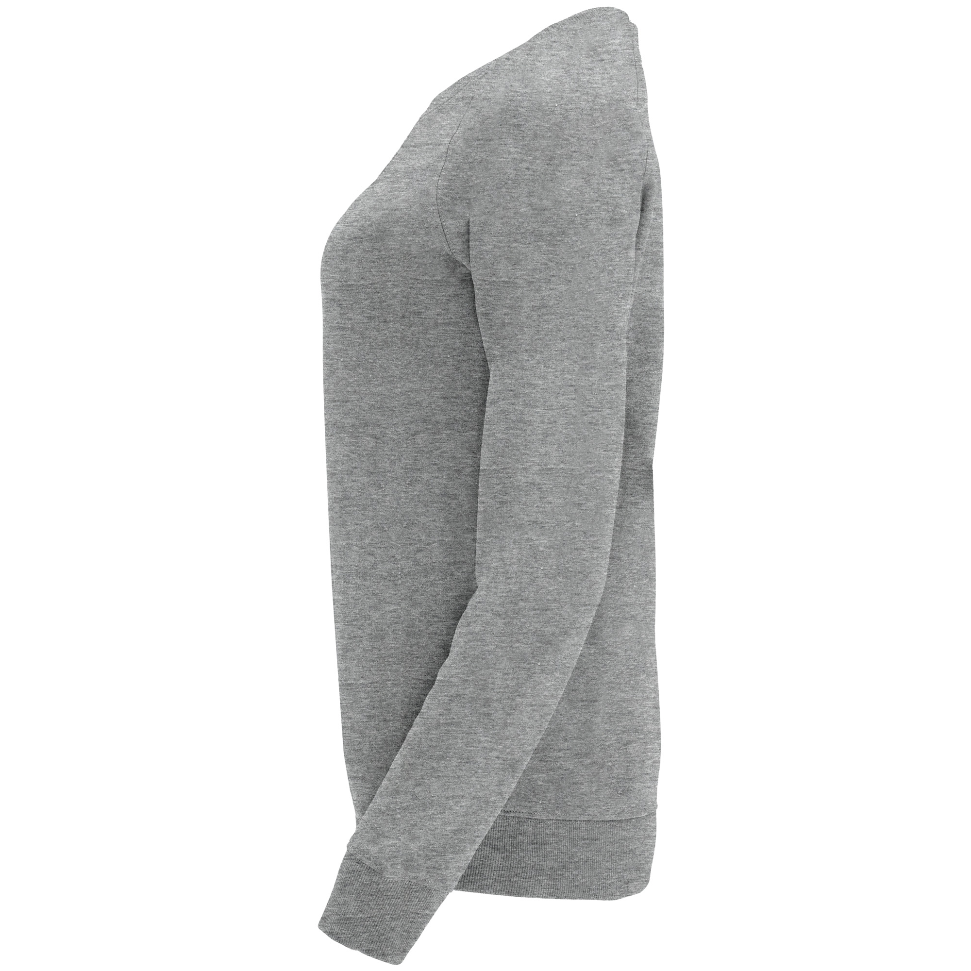 Sudadera entallada de manga larga estilo ranglán. Con cuello, puños y cintura, en canalé 2×1. Cuello redondo con cubrecosturas de refuerzo en el interior del cuello. Detalle frontal de costuras cruzadas, con remallado en tejido canalé 2×1.