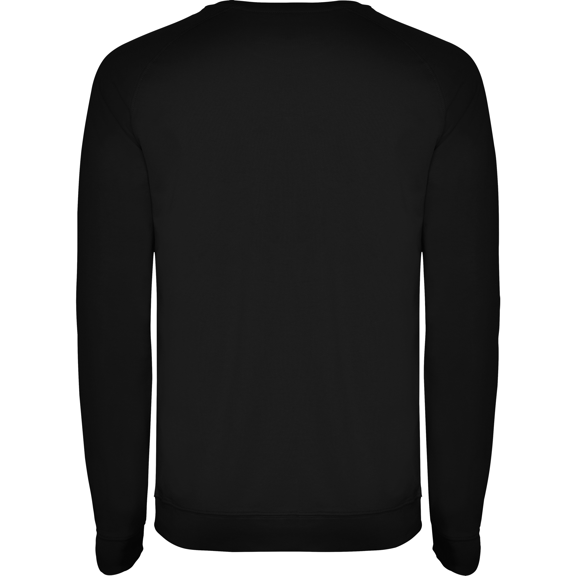 Sudadera de algodón de manga entallada estilo ranglán. Con cuello, puños y cintura, en canalé 1×1. Cuello redondo con adorno de costuras remalladas cruzadas y cubrecosturas de refuerzo en el interior del cuello.