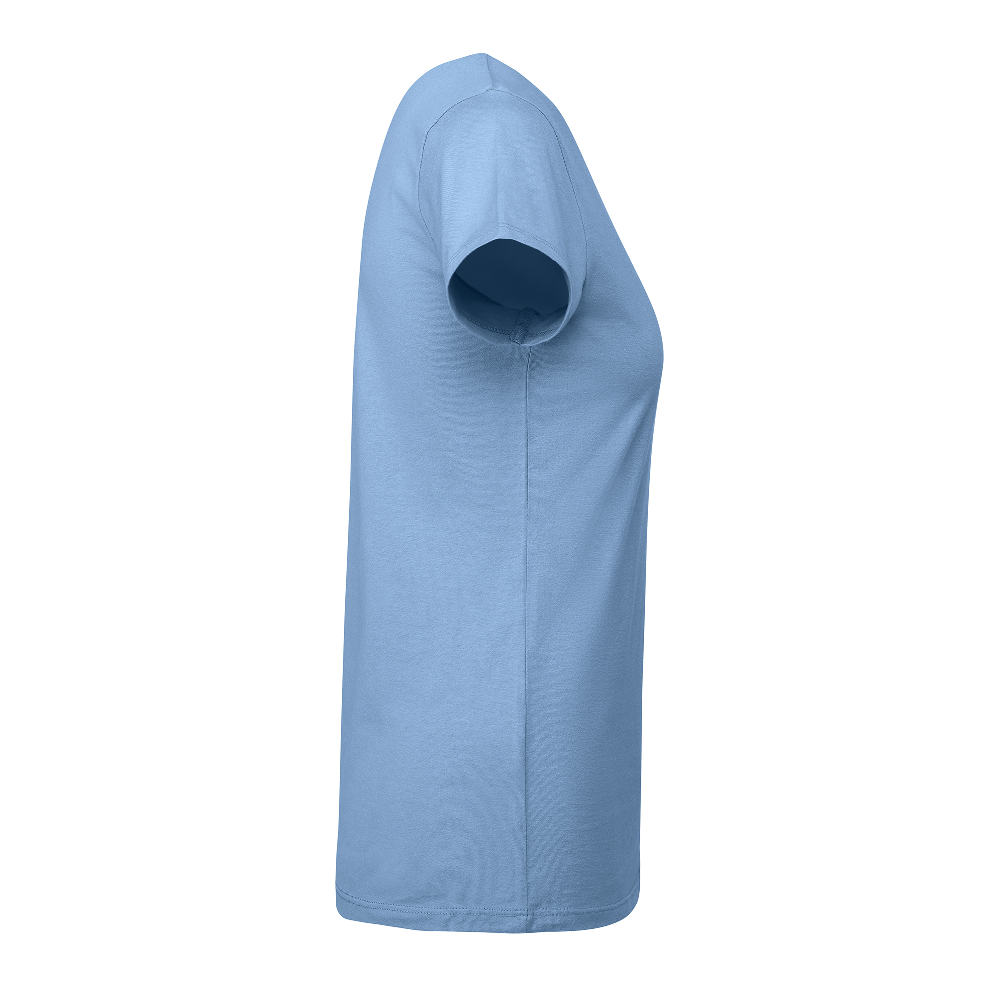 Camiseta de mujer entallada de manga corta en algodón orgánico certificado OCS. Cuello redondo en canalé 1×1. Cubrecosturas reforzado en cuello. Costuras laterales.