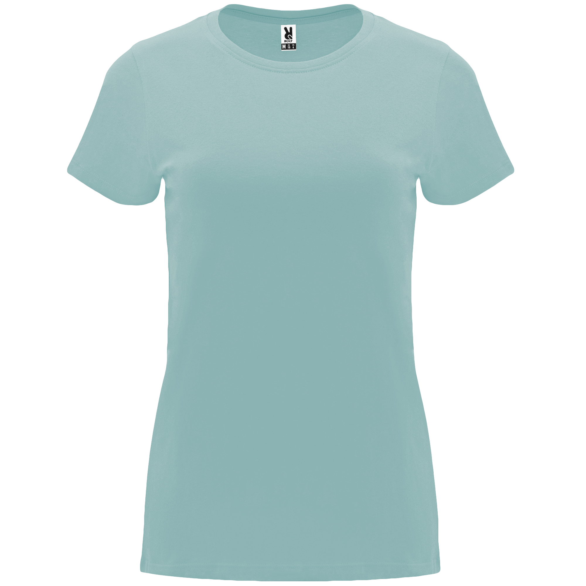 Camiseta de manga corta entallada. Cuello redondo en canalé 1×1 con cubre costuras interior. Costuras laterales.
