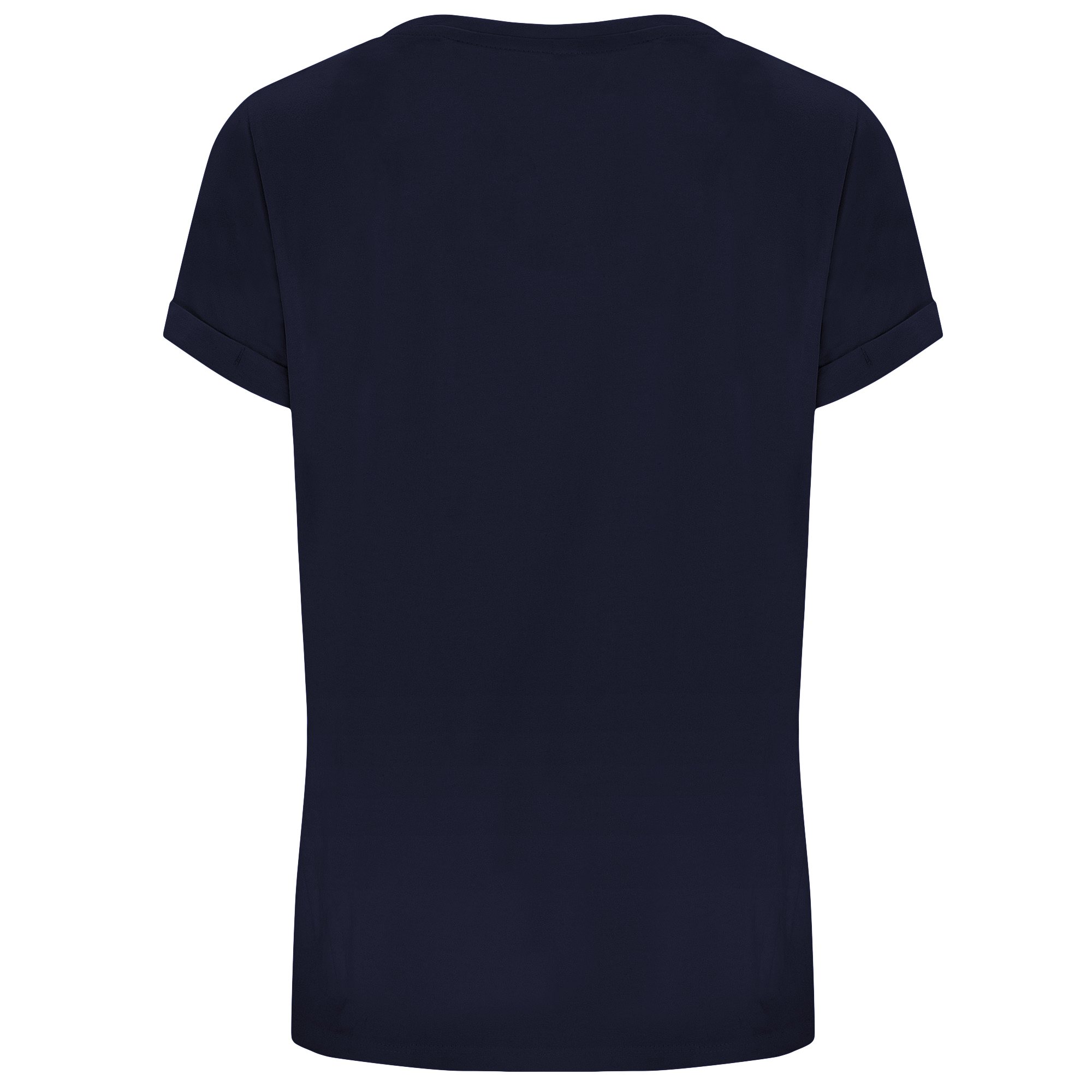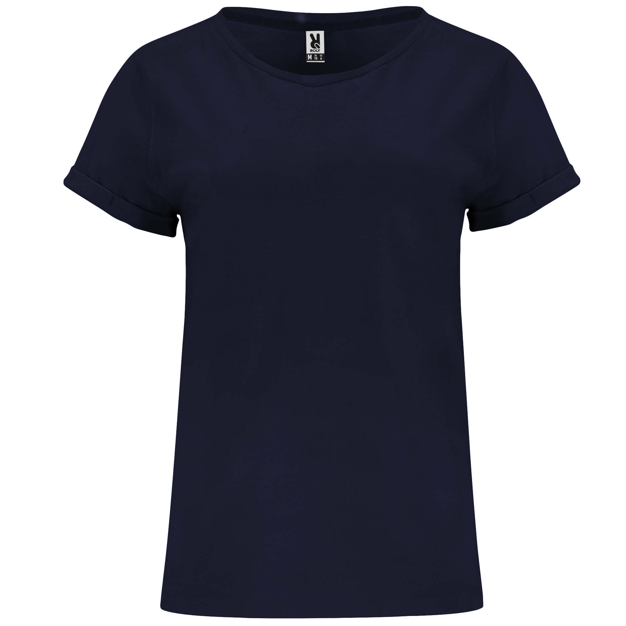 Camiseta de manga corta holgada con escote del mismo tejido. Cuello con cubrecosturas interior. Mangas con dobladillo asegurado. Costuras laterales.