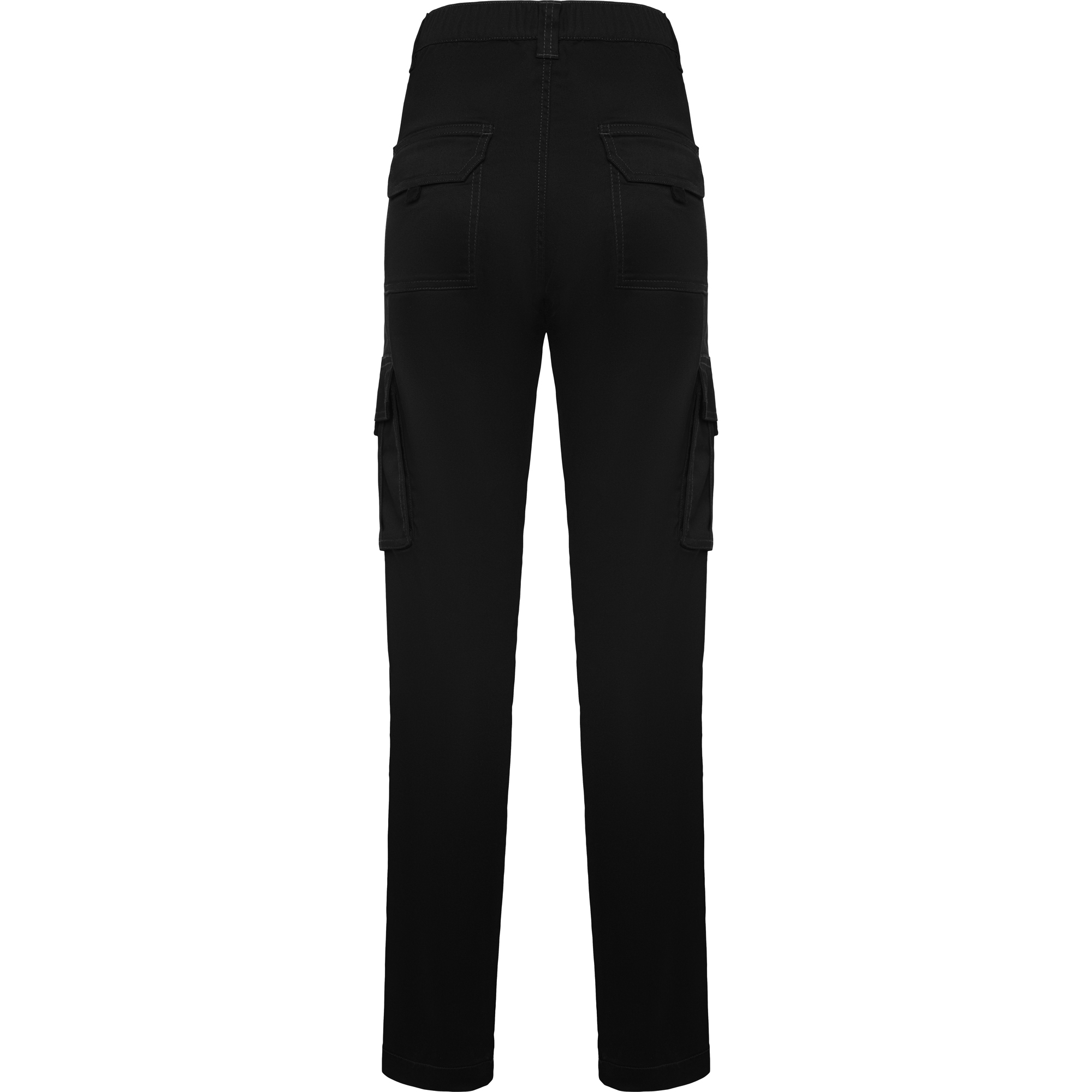 Pantalón largo de mujer con elastano para mayor libertad de movimiento. · Cintura ajustable elástica en parte trasera. · Dos bolsillos frontales. · Dos bolsillos funcionales traseros con solapa y cierre velcro. · Dos bolsillos funcionales laterales de fuelle con solapa y cierre velcro. · Tejido cómodo y flexible. · Costuras a contraste.
