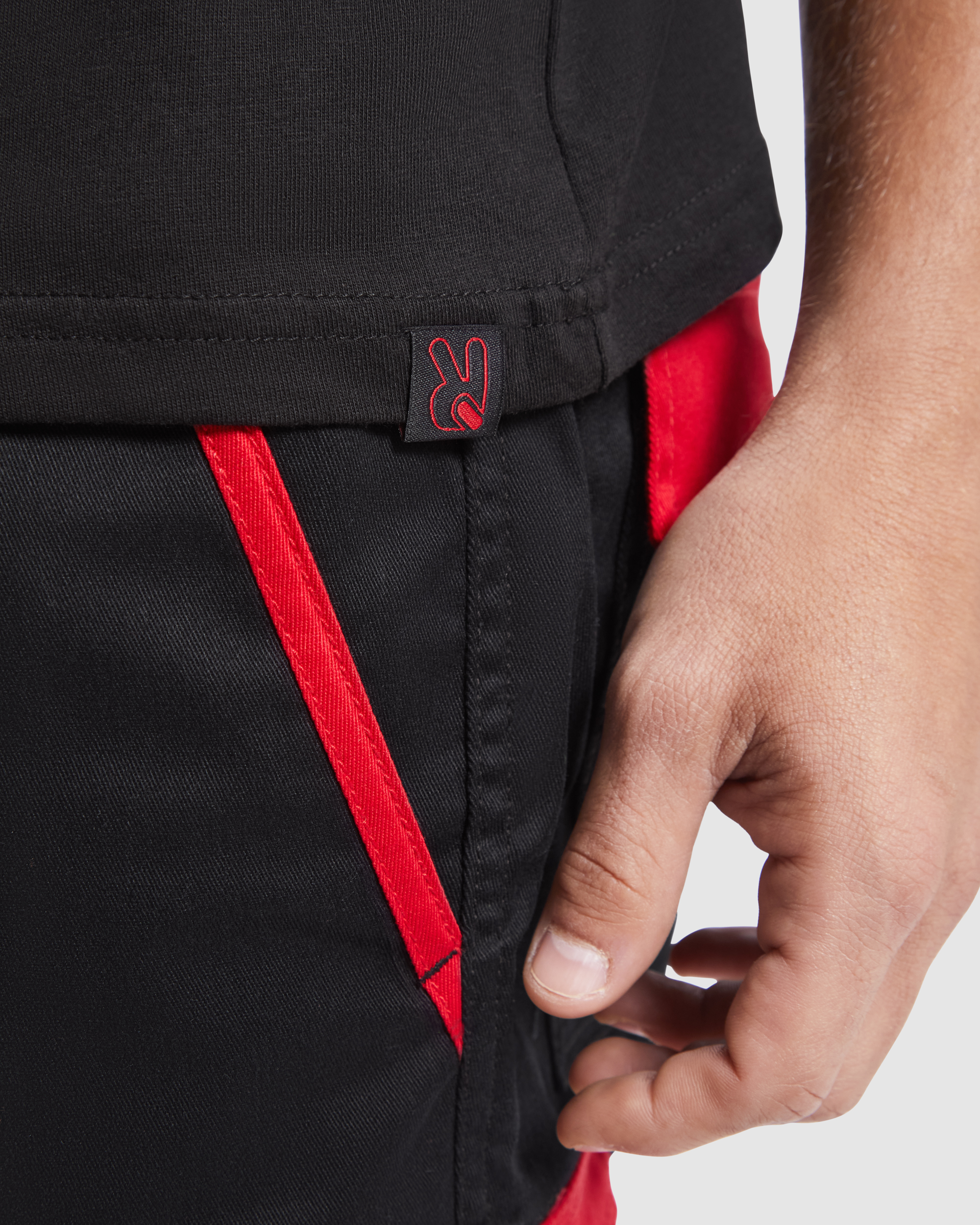 Camiseta de manga corta en colores combinados. · Cuello redondo con cubre costuras interior a contraste. · Costuras laterales. · Piezas de hombros y detalles a contraste.