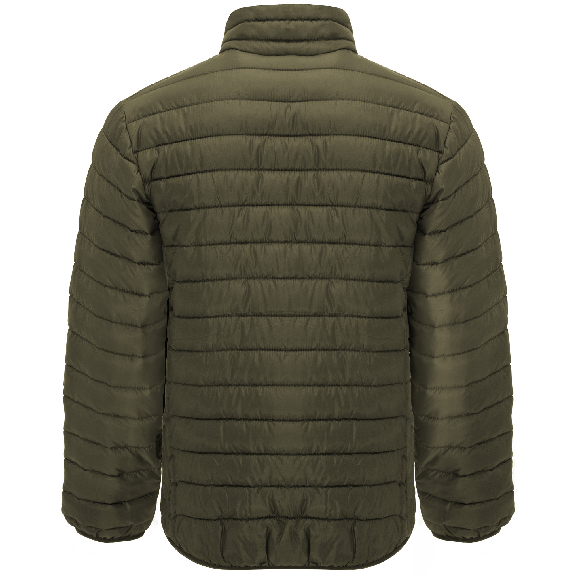 Chaqueta de hombre acolchada con relleno tacto pluma. ·Cremalleras invertidas a tono con protector de barbilla y tirador. ·Dos bolsillos frontales con cremalleras. ·Ribete elástico a tono en puños y bajo. ·Forro interior a contraste. ·Prenda ligera y plegable