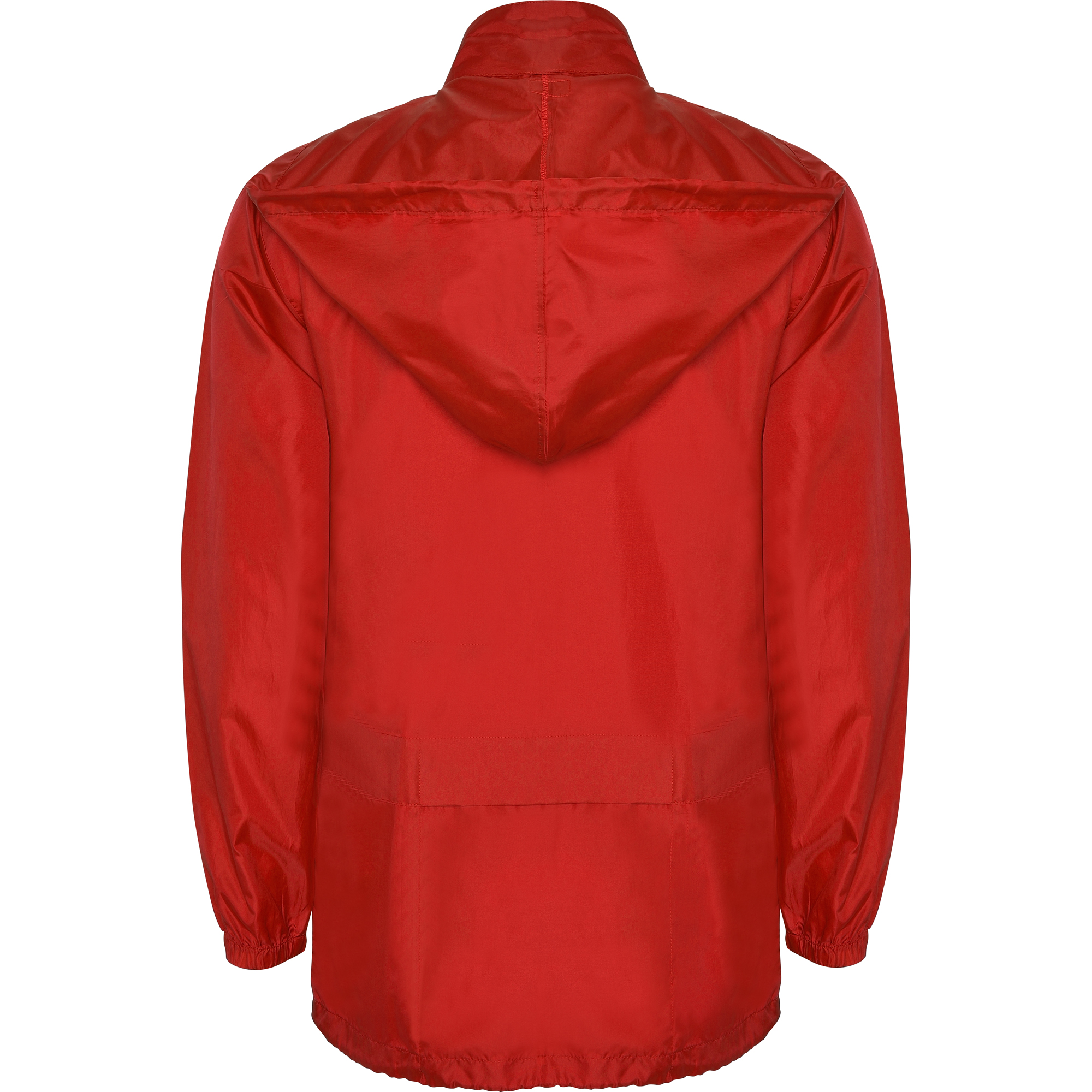 Chubasquero unisex. Cuello alto y capucha extraíble con cordones ajustables. Cremallera central al tono con tirador. Dos bolsillos laterales de cremallera con solapa. Puños elásticos. Bajo con cordones ajustables en interior. Goma elástica en el interior del bolsillo para su plegado y guardado.