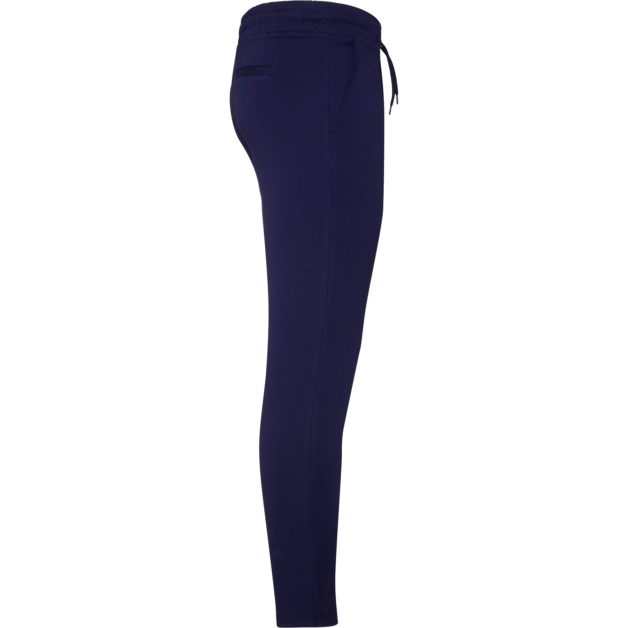Pantalón de mujer en tejido elástico. Cinturilla con cordón ajustable y elástico en la parte trasera. Pinzas en la parte delantera. Dos bolsillos frontales. Dos bolsillos traseros decorativos