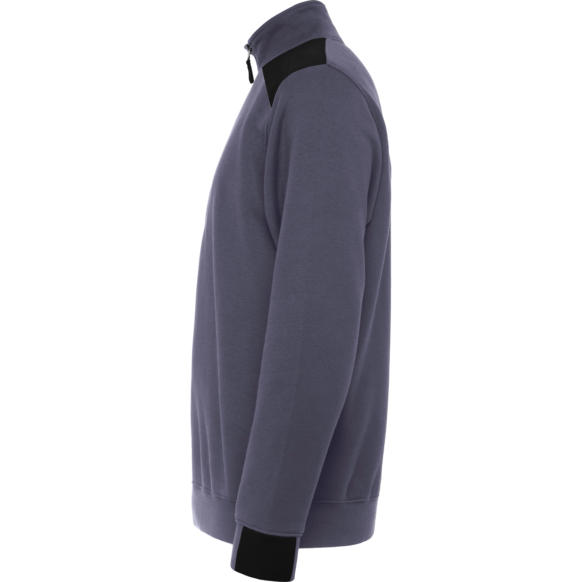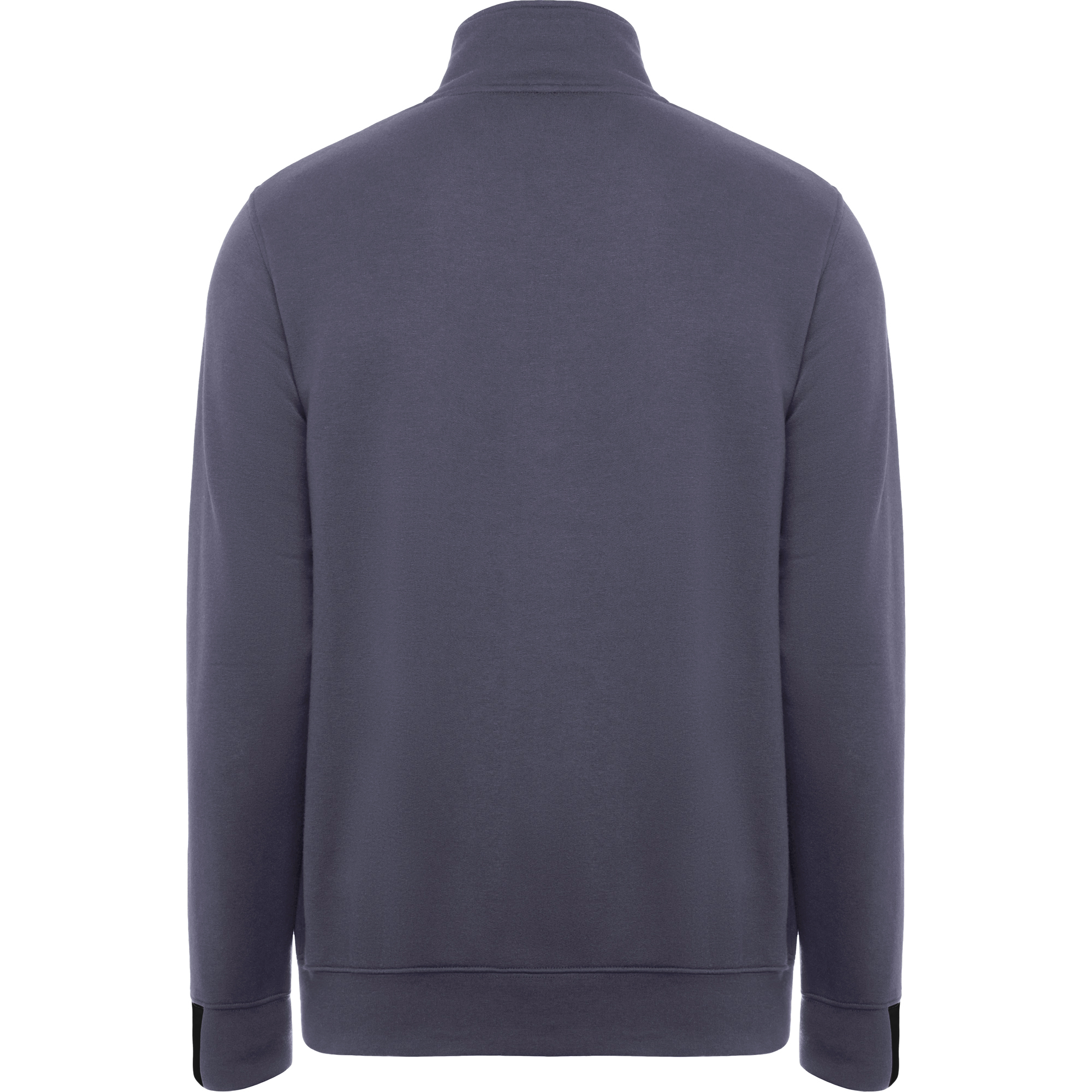 Sudadera de media cremallera y cuello alto en colores combinados · Cubre costuras reforzado en el interior del cuello. · Piezas de hombros y detalles a contraste. · Mitad del puño y bajo en punto canalé 1×1.