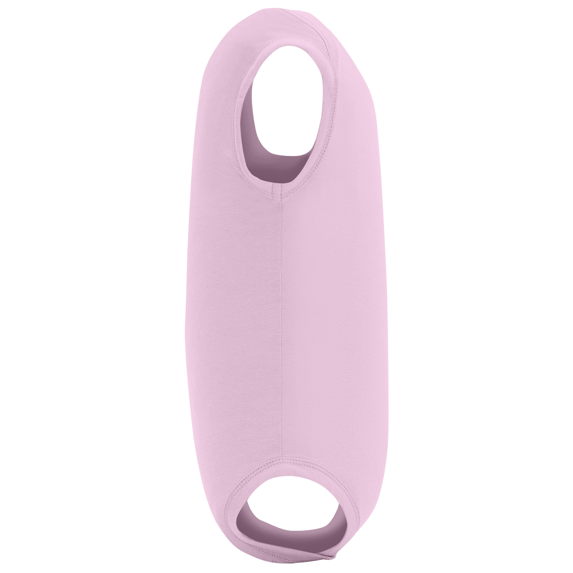 Body de bebé de tirantes de punto liso. Cuello redondo, sisas y bajo ribeteado en canalé 1×1. Cierre con botones a presión en la entrepierna. Hombro de apertura cruzada.